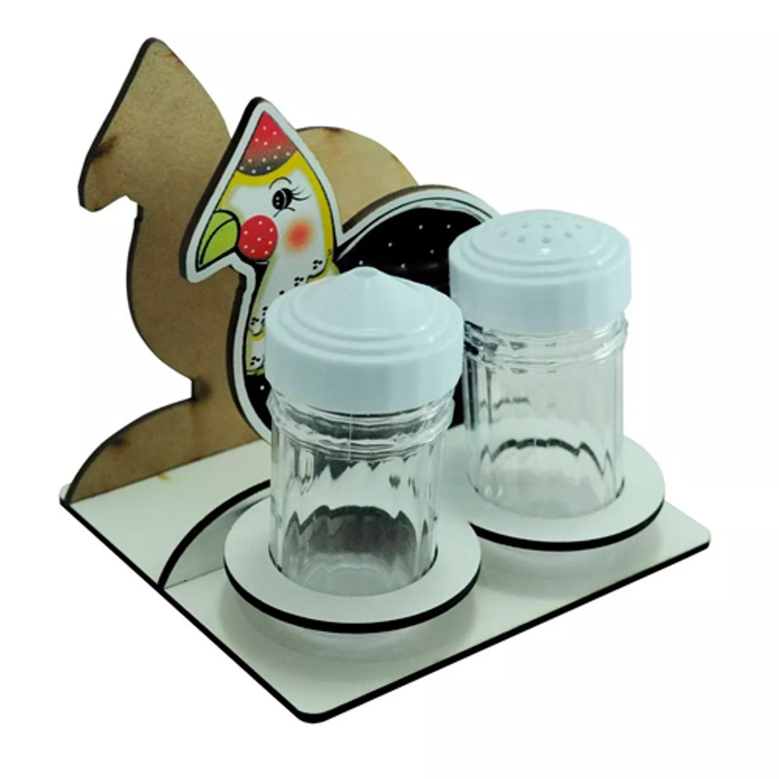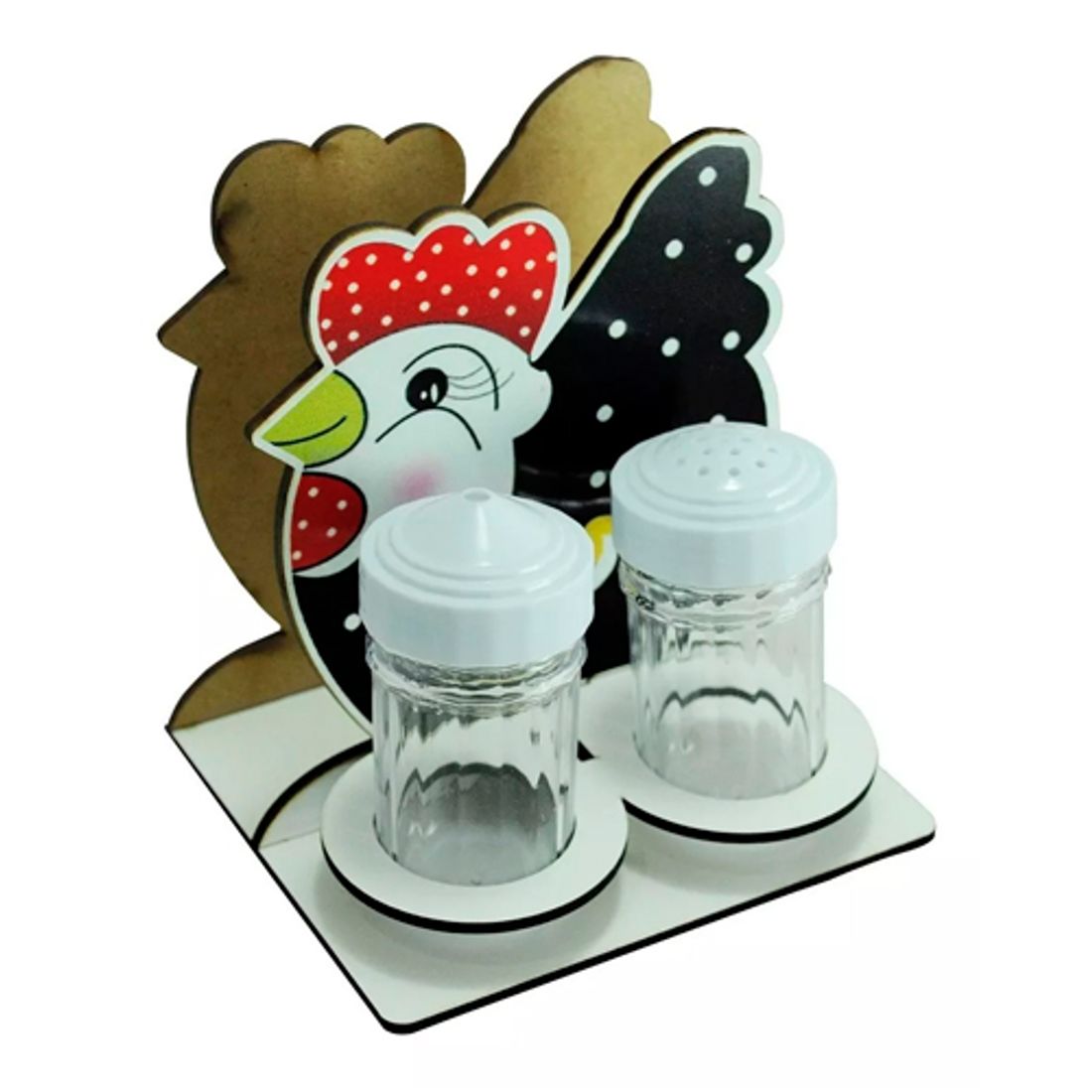 Porta Guardanapo Com Saleiro E Paliteiro Galinha Angola Laser Mdf
