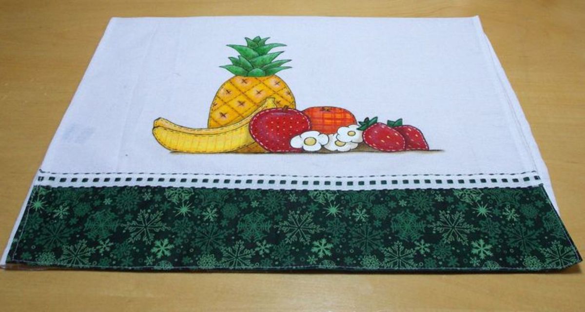 Pano De Prato Pintado Abacaxi E Frutas Movel De Cozinha Nunca