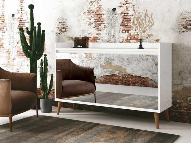 Aparador Para Sala Com Espelhos E Prateleira Houston Artely Pinho