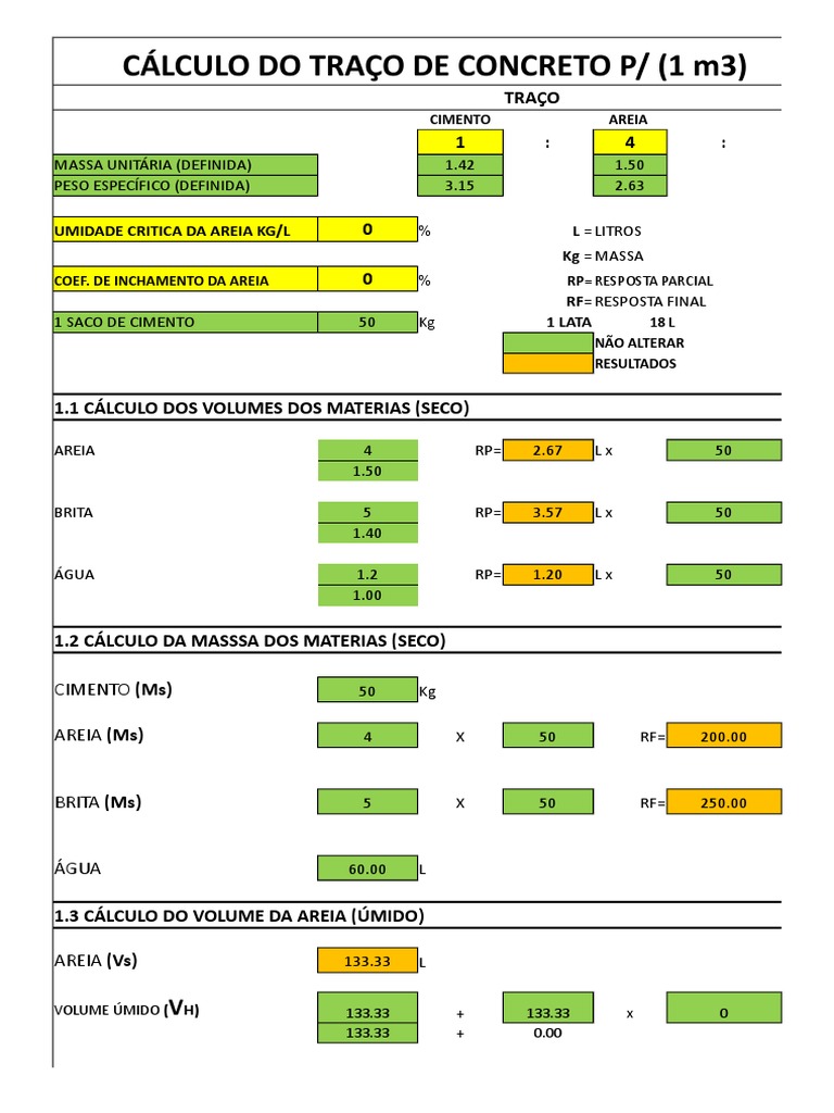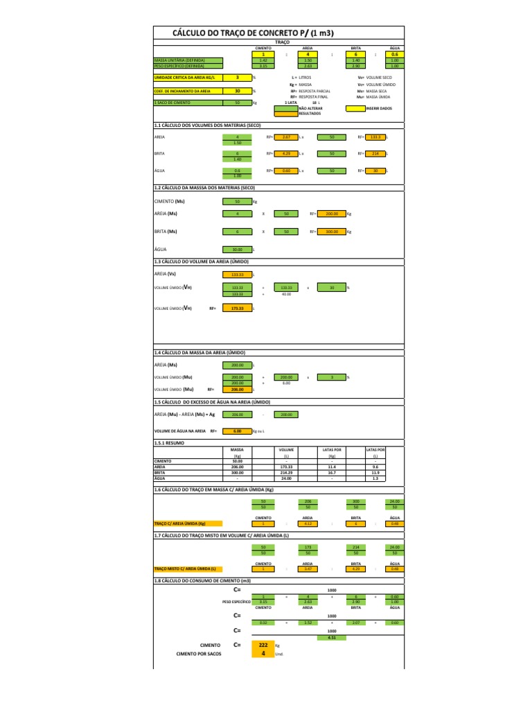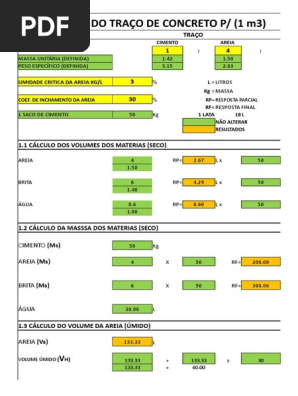 Calculo Traco Concreto Xlsx Umidade Ciencia Ambiental