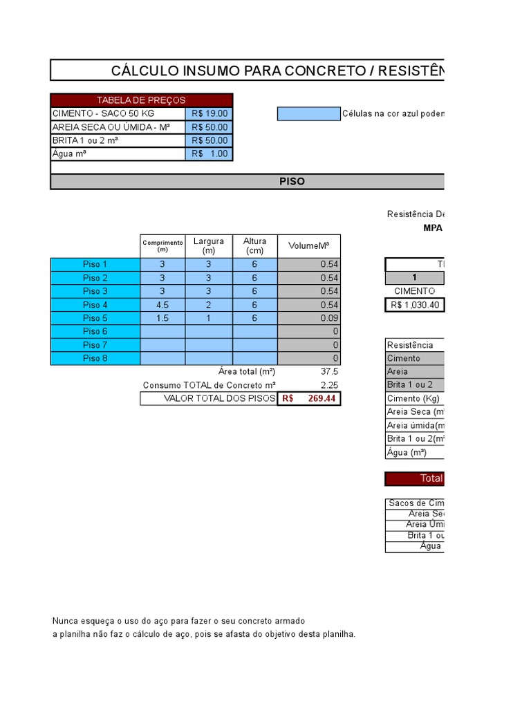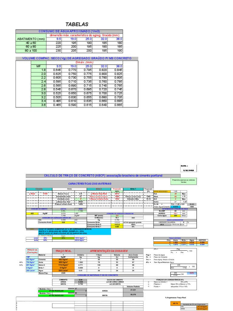 Planilha Traco De Concreto Planilha Para Cimento Cp32 Aos 28