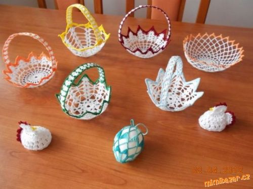 Artesanato passo a passo de cesta de crochê endurecido.