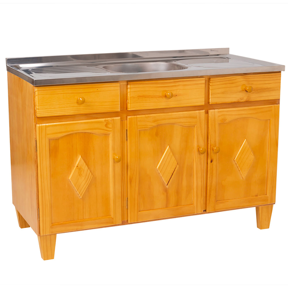 Contemporanea Pia Em Inox Cm Balcao De Cozinha Madeira 3 Gavetas