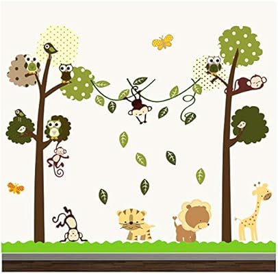 Adesivo Parede Infantil Para Quarto Arvore Safari Colorido