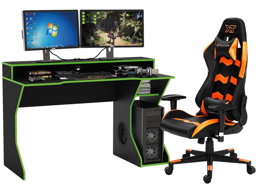 Kit Cadeira Gamer Xt Racer Reclinavel Preta E Laranja Mesa