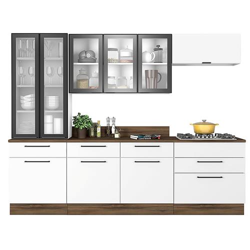 Cozinha Compacta 4 Pecas 13 Portas Armario De Vidro E Balcao Com