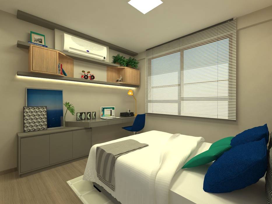 Projeto Decoracao Design Interior Ambiente Quarto Solteiro Cama
