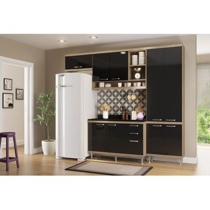 Cozinha Compacta Pequim 9 Portas Mp2933 Multimoveis Preto Nas