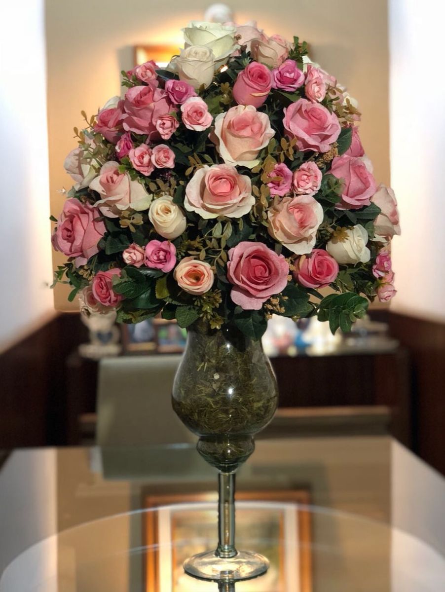 Arranjo De Flores Artificiais Rosas Mistas Na Taca De Vidro Grande