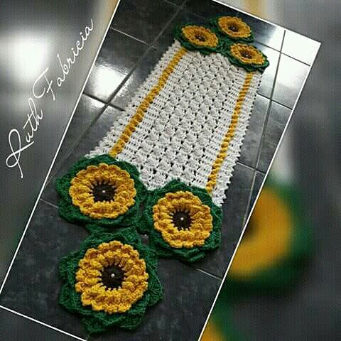 Caminho De Mesa Com Flores E Folhas Croche Ou Aplicadas