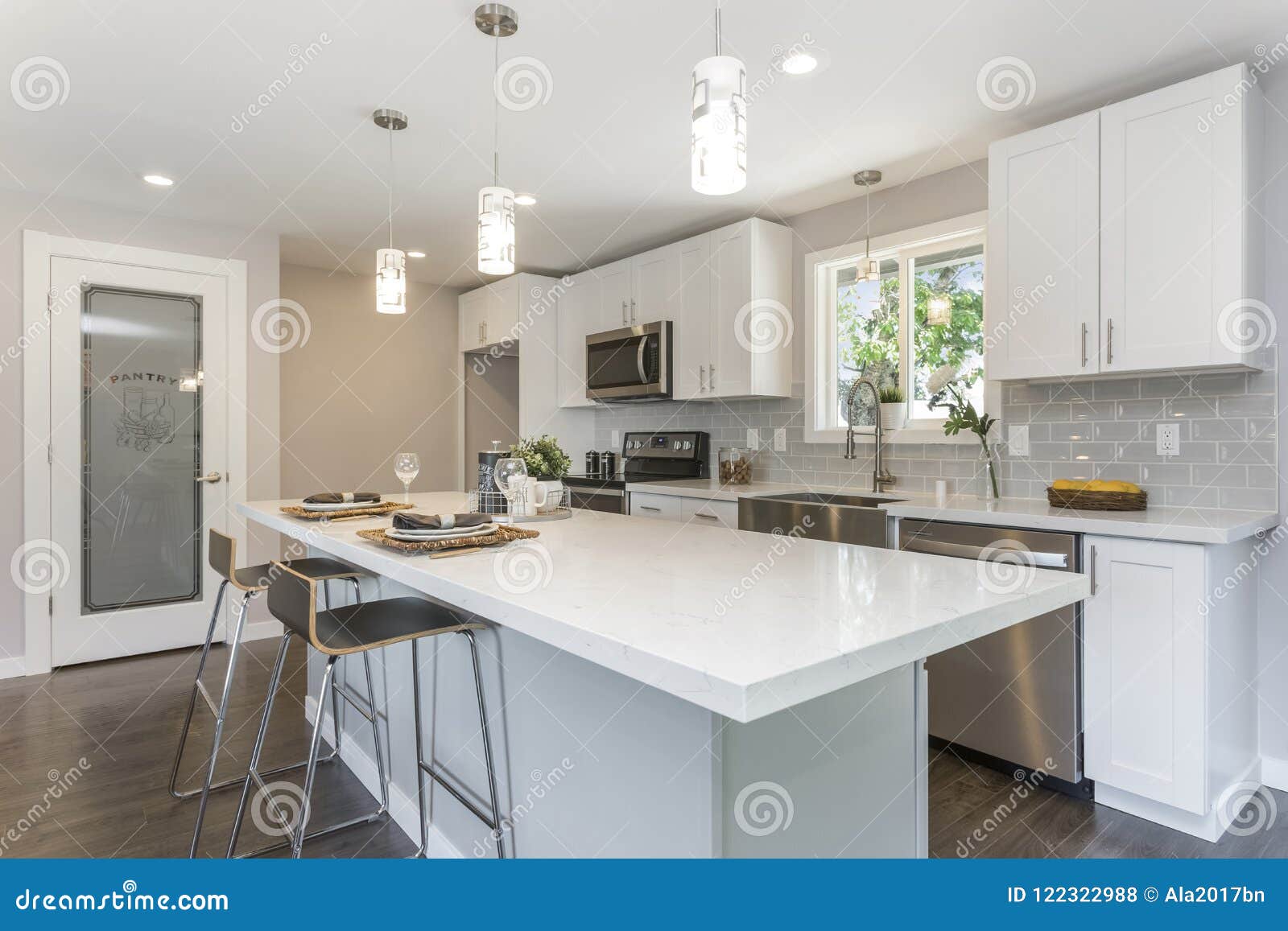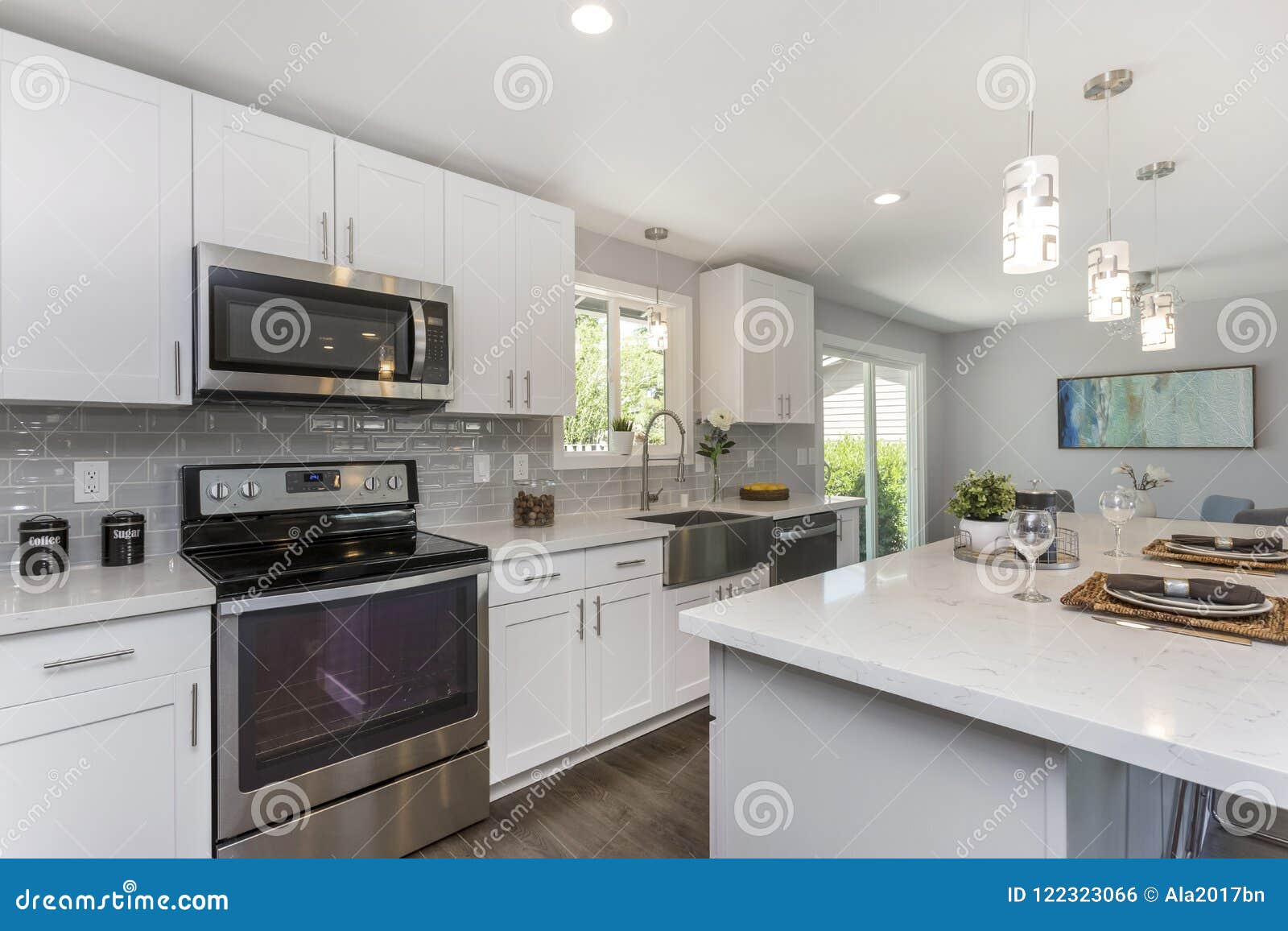 Cozinha Lindo Com O Conceito Aberto Floorplan Foto De Stock