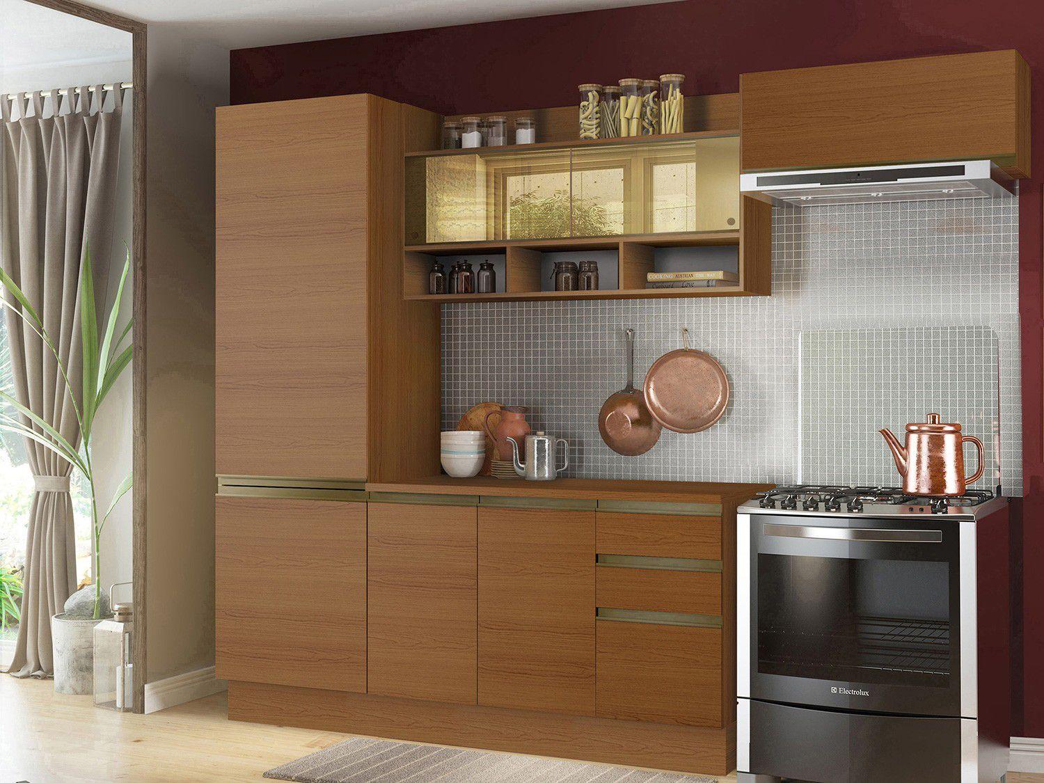 Cozinha Compacta Madesa Glamy Top Com Armario E Balcao 3 Gav R