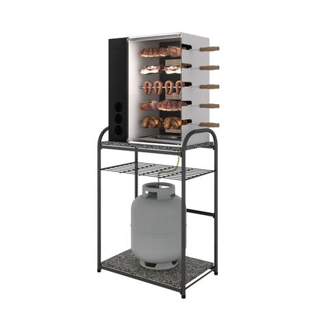 Balcao Buenos Aires Para Churrasqueira Preto Prata Com Tampo De