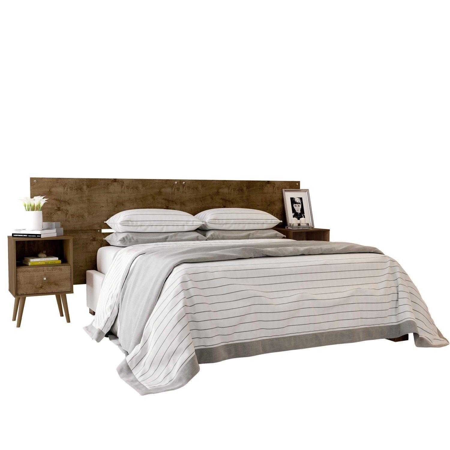 Cabeceira Cama Box Casal Henn Calenda Com Criado Mudo Cor Rustico