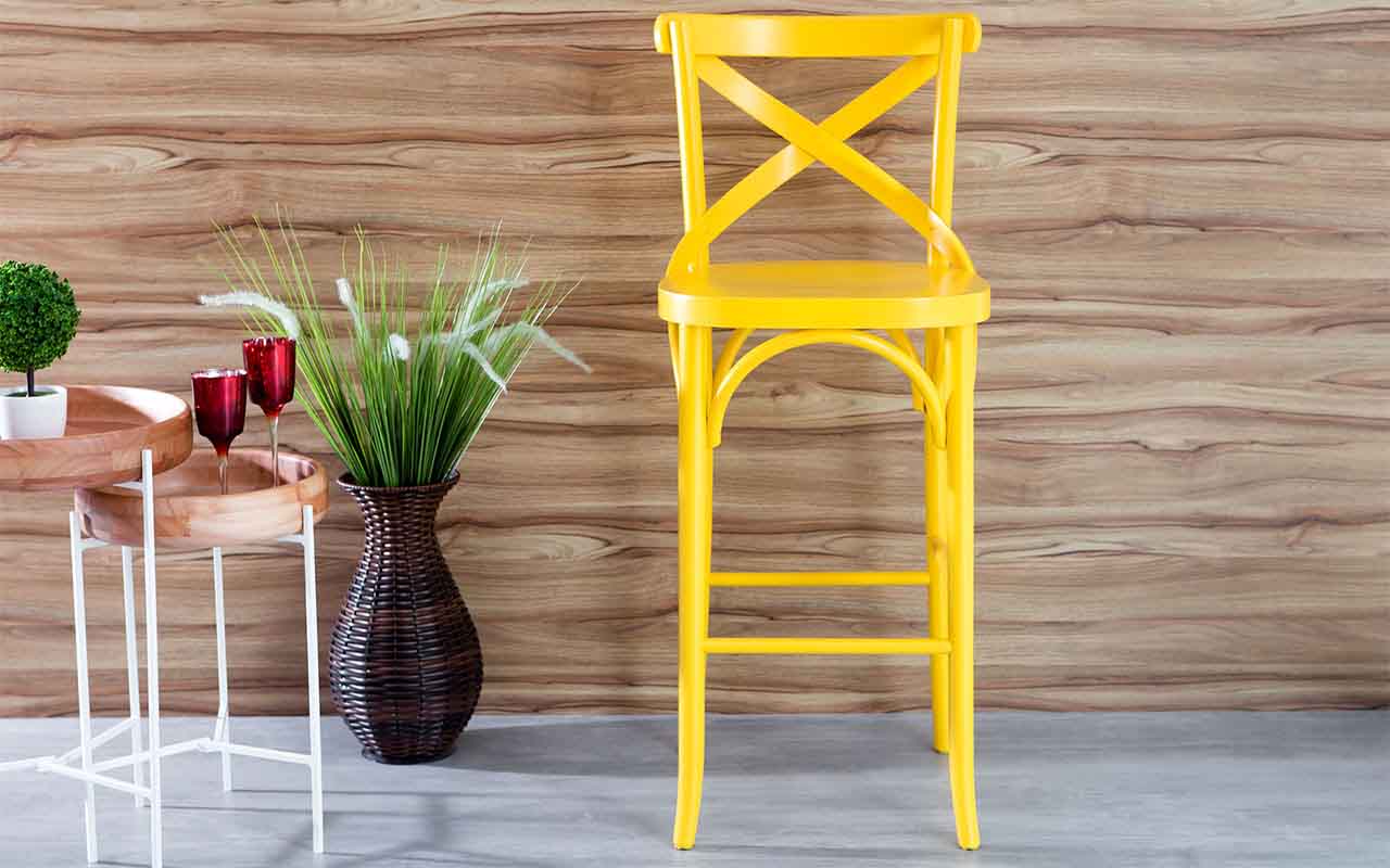 Banqueta Alta Colorida De Madeira Laca Amarela Madeleine