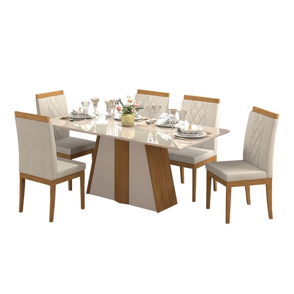 Conjunto Sala De Jantar Munique Maia Mesa 6 Cadeiras De Madeira