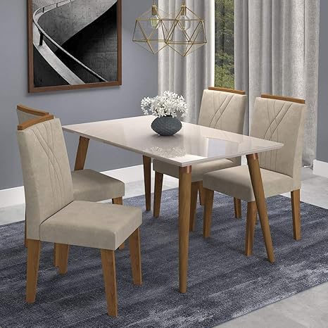 Sala Jantar Adele 130 Cm X 80 Com 4 Cadeiras Nicole Madeira Off