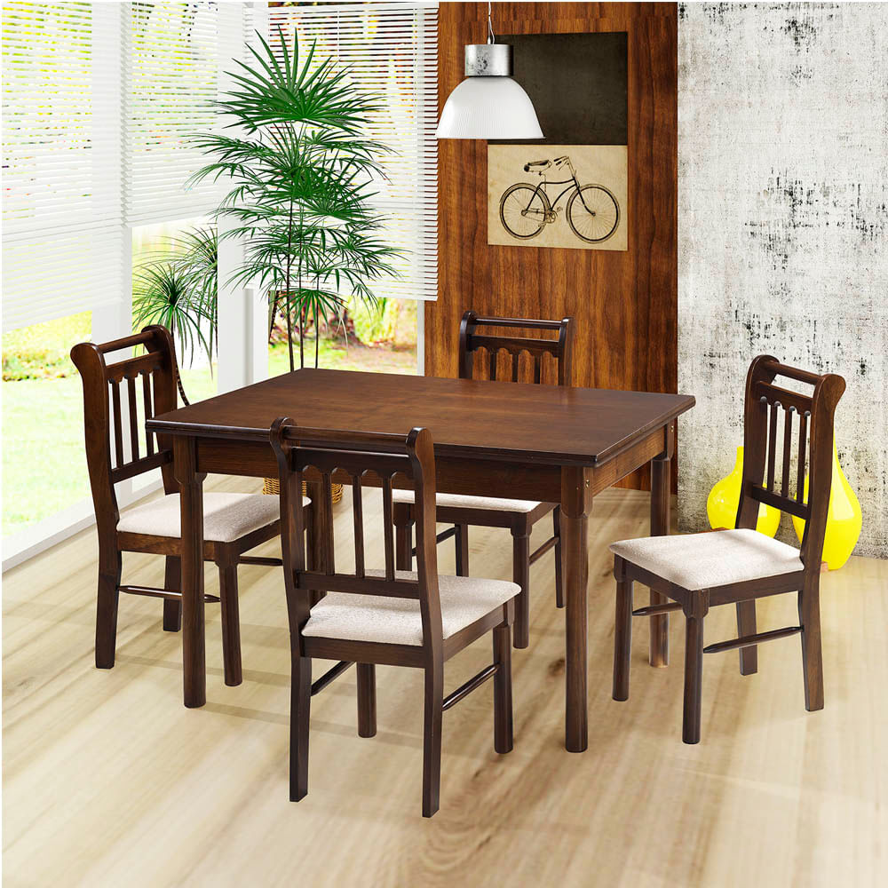 Conjunto Para Sala De Jantar Mesa 120 Cm E 4 Cadeiras Madeira