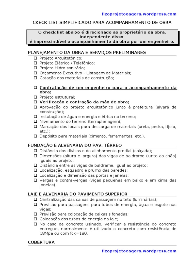 Check List Do Projeto Legal O Projeto Arquitetos Do Brasil