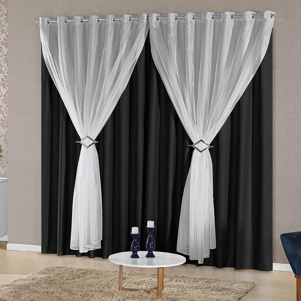 Cortina Blecaute 3 00m X 2 50m Com Voil Para Sala Ou Quarto